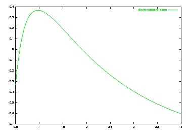 (a-0.4)60That is, we need 0.4 square centimeters to do anything useful at all, and then we can increase the value of our design by $60 for each additional square centimeter. Here is a graph of the cost per die and the value per die: