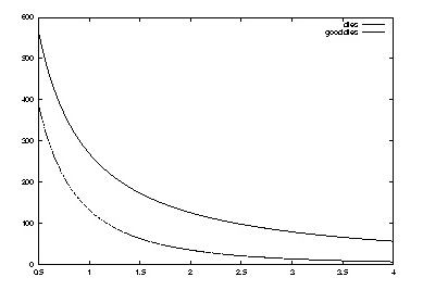To pick a die size, we need the value of different sizes, so we can compute the profit in making chips. There is usually no way to determine this value precisely, but we can make some estimates. It will typically go up in steps, as we reach sizes that allow particular desirable designs to fit on the chip. For the sake of example, suppose that in the range from 1/2 to 4 square centimeters, the value of a die is roughly