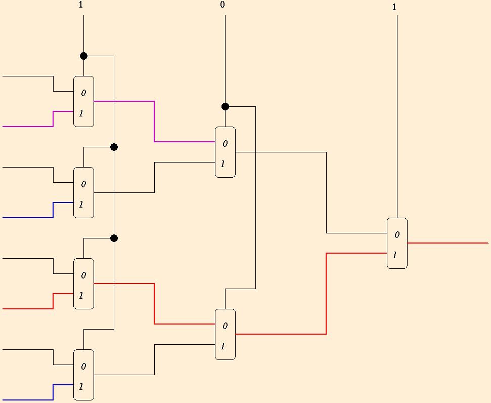 cascade multiplexors in a binary tree as shown below:
