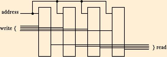 The height of a memory is the number of addresses. The width is the number of bits per address. The essential problem is to create a sufficiently high memory, 1 bit wide. A 1-bit wide memory is called a ``bitplane.'' By fanning out the address signal to a sequence of bitplanes, we can get as wide a memory as we like.