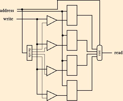 values. Two flip-flops plus a multiplexor is the read side of a memory