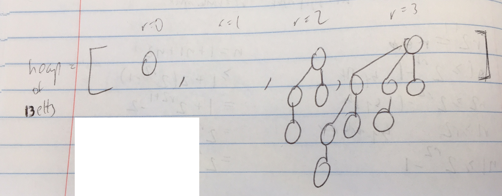 Node 0 n [] is a binomial tree of rank 0.Node r n ts is a binomial tree of rank r > 0 if ts is a list of r binomial trees with rank r-1 through 0, respectively.A binomial tree of rank r has 2r nodes.