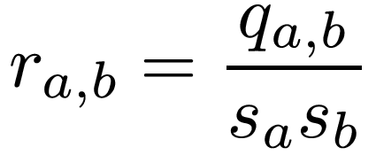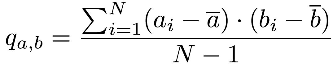 Where ai and bi are the individual measurements, and a and b are the means of the measurements.