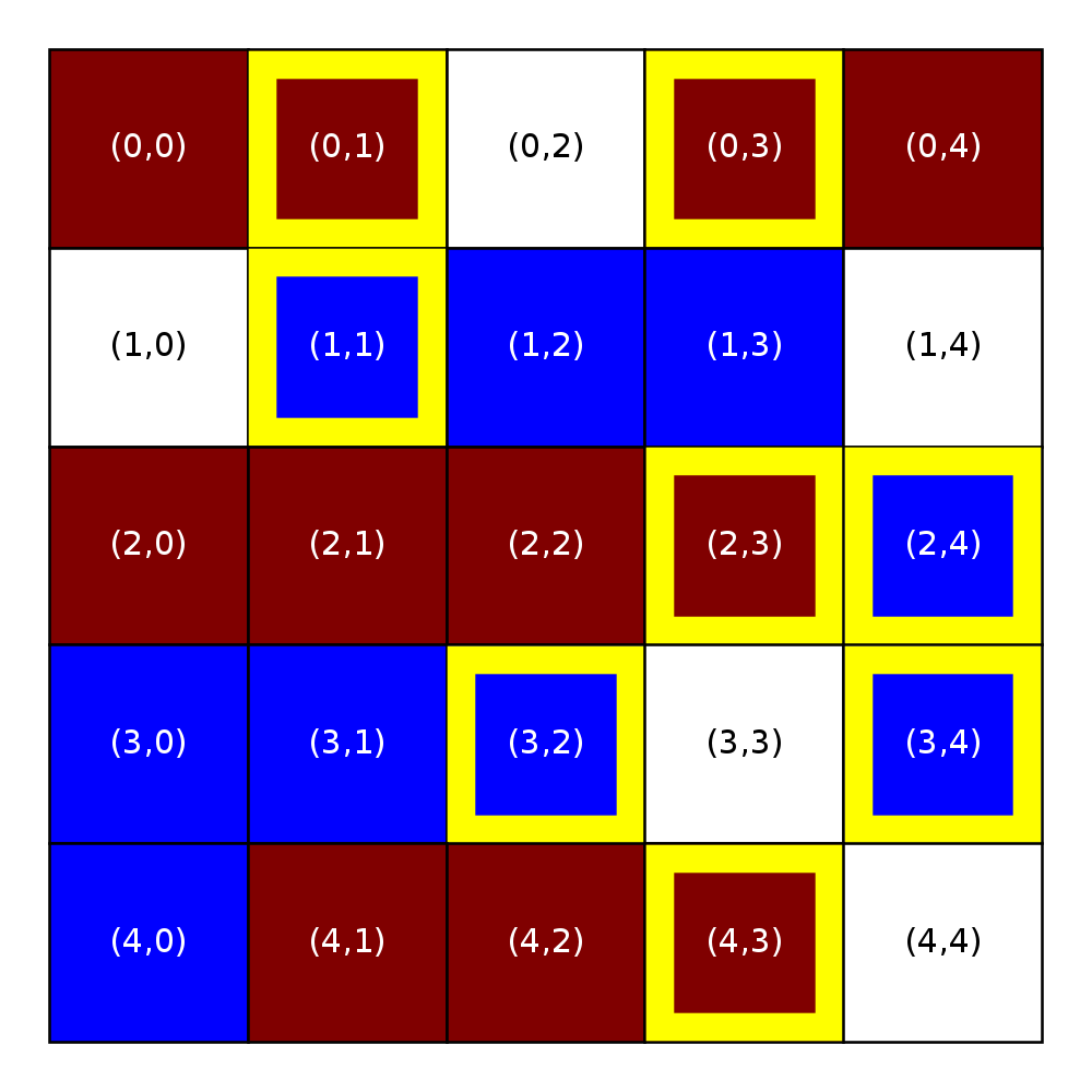 For example, the distance between (2,2) and (4,2) on the grid is \(2\). The distance between (2,3) and (1,1) is \(3\). Note that if a homeowner’s current home is already satisfactory, then that is where they wish to live because the home is satisfactory and the distance from their previous home is 0. That is, a homeowner will not move from a home that is already satisfactory.
